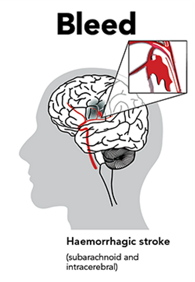 Strokes caused by a break in the wall of a blood vessel in the brain are called haemorrhagic strokes (hemm-orr-ragic).
